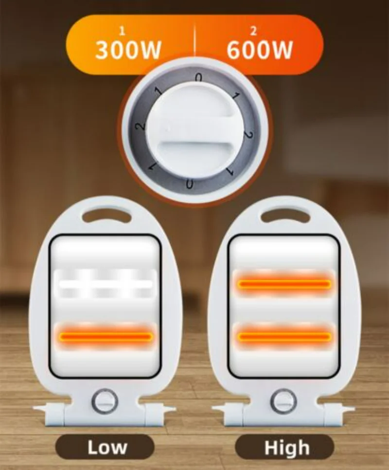 The heater is small, so you can put it anywhere, even in the corner, it doesn’t take up space and very easy to store. The base has a retractable bracket that stabilizes the heater on a flat surface.