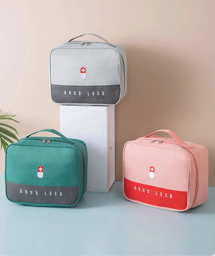 Built-in compartment storage design to help quickly find what you need. The medicine aid bag has a hand-embroidered medicine logo on the front so that it can be found quickly in case of an emergency; Double zipper for smooth opening and closing