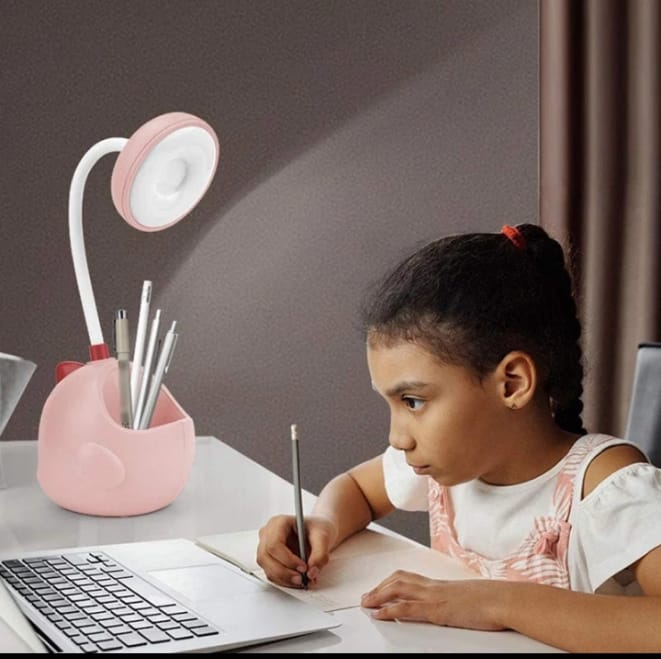 LED Table Lamp USB Rechargeable Flexible Desk Lamp With Pen Holder Cute Dormitory Eyes Protection Reading Light Bedside Lamp (Random Color)