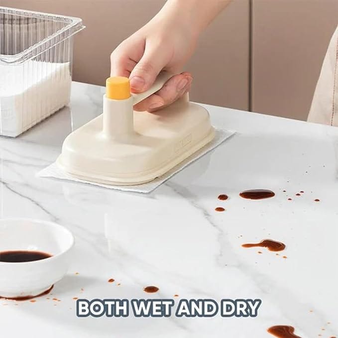 ?Stain Remover Brush With Handle?Household cleaner with reusable handle of ergonomic plastic material; Supplementary disposable rags to keep the kitchen clean.The handle is comfortable, easy to hold, and won’t slip with wet hands. Use wet or dry.